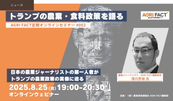 『AGRI FACT』定期オンラインセミナー「トランプ大統領の農業・食料戦略を語る ~日米コメ・関税交渉の真相と食料安全保障の未来~」開催!