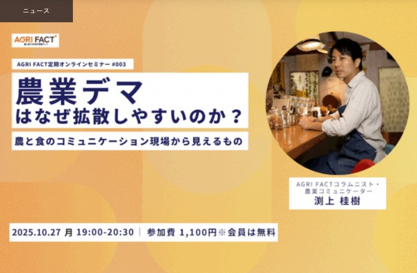 AGRI FACT定期オンラインセミナー #003「農業デマはなぜ拡散しやすいのか? 農と食のコミュニケーション現場から見えるもの」開催!